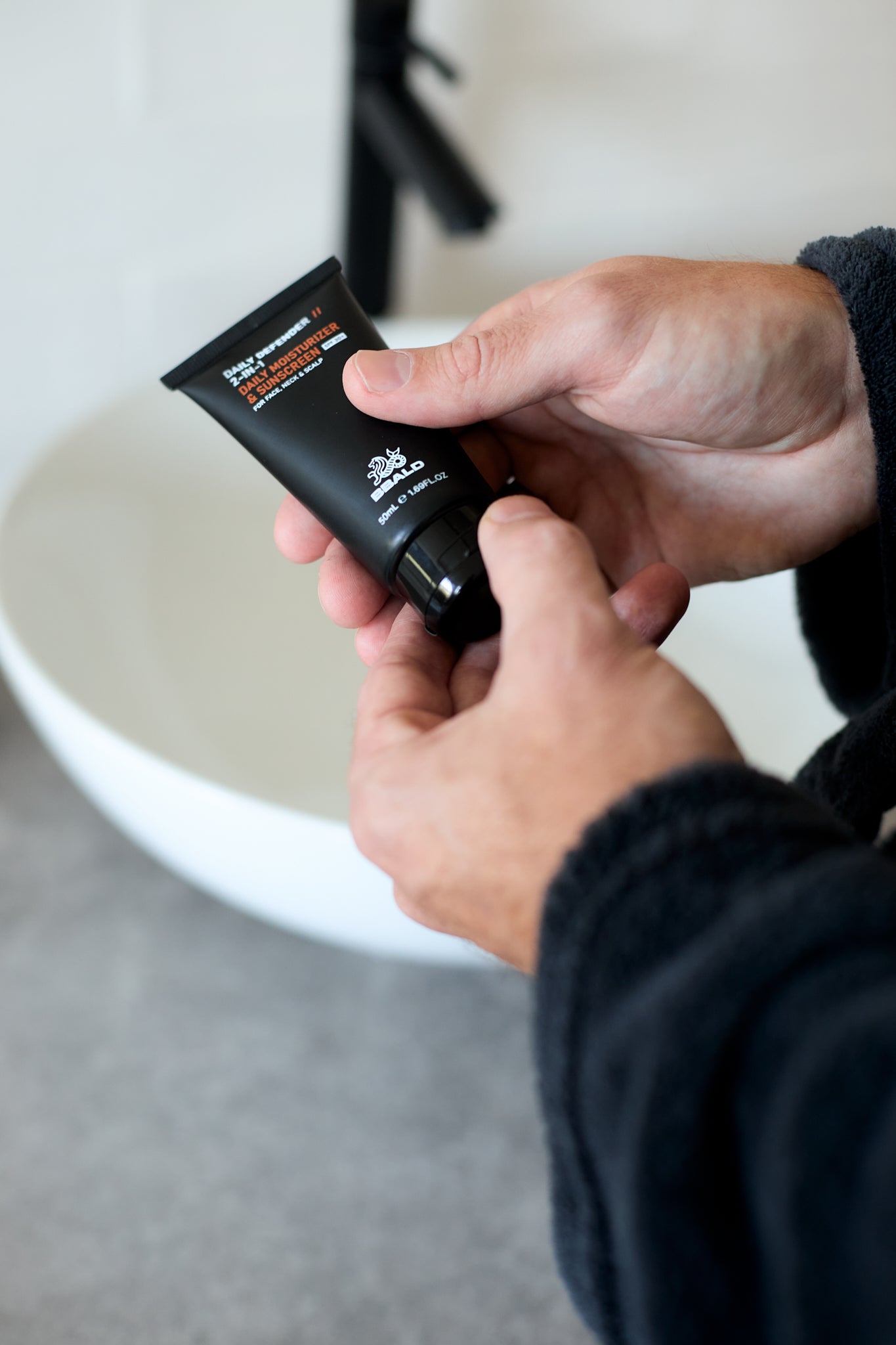 BBALD’s Daily Defender is de ideale hydraterende dagcrème met SPF30 en is ontwikkeld vanuit drie kernwaarden: eenvoud, effectiviteit en zelfvertrouwen. De crème is afgestemd op de unieke eigenschappen van mannenhuid en bevat een rijke mix van en natuurlijke ingrediënten die diep voeden, hydrateren én beschermen.