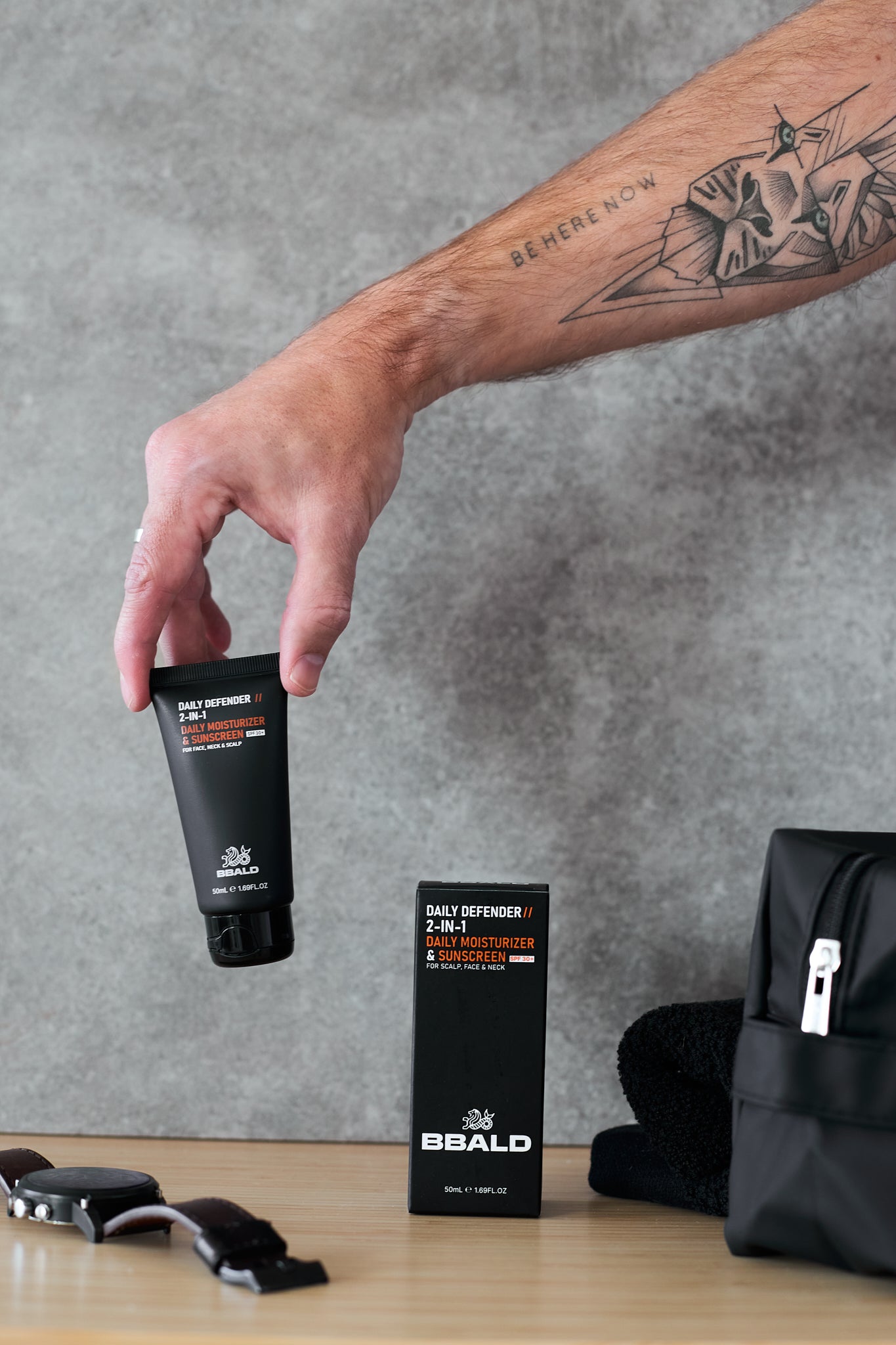 De BBALD™ Daily Defender is een lichte, niet-vette dagcrème met SPF 30 die je huid beschermt tegen zon, wind, kou en uitdroging. Hydrateer & bescherm je huid – elke dag